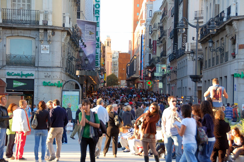 A swift 3.5 hours away from Barcelona by the new fast train, Madrid is not what I expected. Had imagined a yellow city in a deserted landscape, donno why, maybe from looking at the yellow color on the map in central Spain. Yet what I found was a monumental, green city, busy, but a bright type of busy. Highlights were meeting my friend I. after a long time, going to the bright Real Madrid-Real Valladolid game (4-2, nice one),